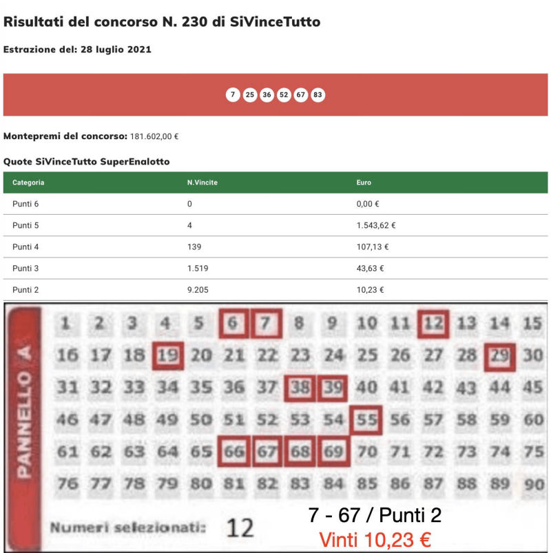 | CONCORSO 230 DEL 28.07.2021 10,23€ | TOTALE 87,19€ |