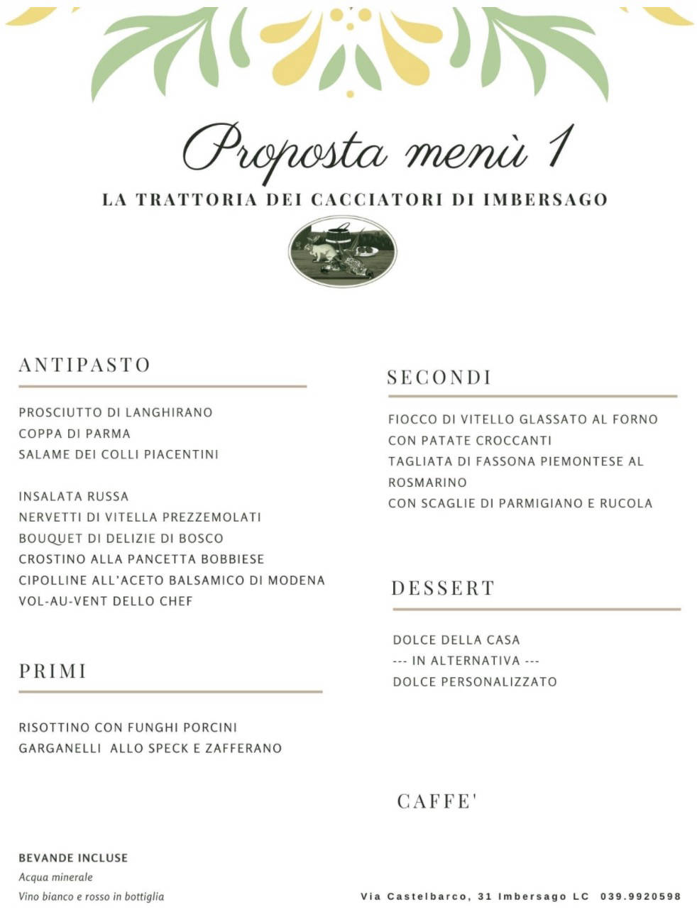 si potrà richiedere (sempre in loco) un menù da € 25,00 che comprende un primo (bianco/rosso/verde),